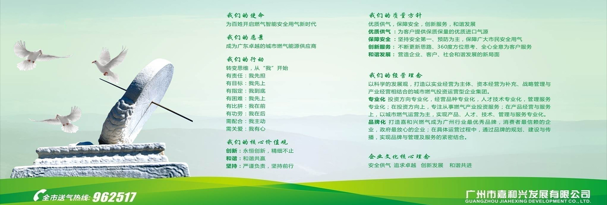 公司在廣州經(jīng)營(yíng)多年的液化氣的過(guò)程中,積累了大量的行業(yè)資源,積極配合政府管理及倡導行業(yè)溝通協(xié)調?,F在“嘉和興”已成為廣州液化氣市場(chǎng)的著(zhù)名品牌。